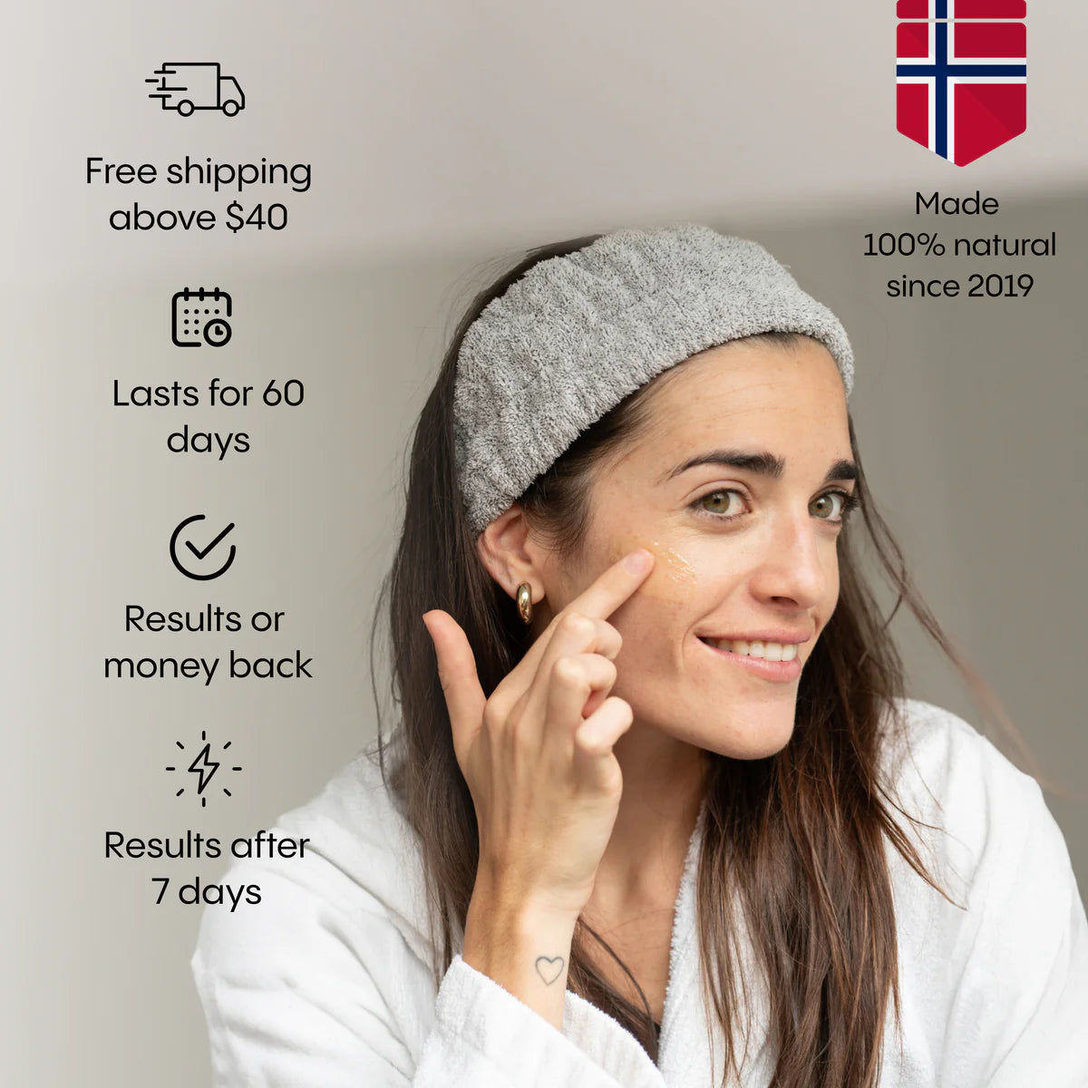You do not want another pretty jar that only smells good and feels luxurious for a few seconds. You want to see something change. Aura is packed with 380 bioactive compounds from wild and organic plants chosen for their visible impact on mature and stressed skin. Sea buckthorn and rosehip help support collagen and elasticity so skin looks firmer and less creased. Pomegranate seed oil and squalane lock in moisture to plump out fine lines from within, while beeswax creates a breathable shield that keeps that hydration where it belongs. Over the weeks, you start to notice less pronounced crow’s feet, a smoother look around your mouth and a more even tone, even on bare-skin days.