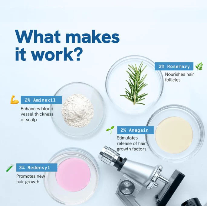 Aura™ is a precision roll-on serum formulated to stimulate hair regrowth, reduce thinning, and restore confidence—without greasy oils or messy routines. Backed by clinically-tested ingredients like Rosemary, Redensyl®, Aminexil®, and Anagain™, it's your simple, mess-free solution for stronger, fuller hair.