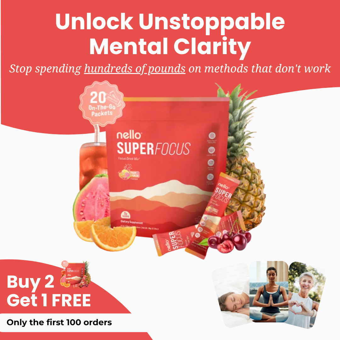 Brain fog isn’t a lack of willpower — it’s your brain asking for balance. Nello Superfocus helps restore that balance through clean, nootropic nutrition that works with your natural chemistry.