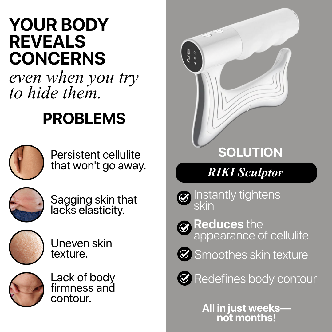 Many women know the frustration of stubborn areas—hips, thighs, arms—that no routine seems to smooth. The RIKI Sculptor works where your hands cannot, delivering precise stimulation that tightens the skin, firms underlying muscles, and encourages fluid movement under the surface.